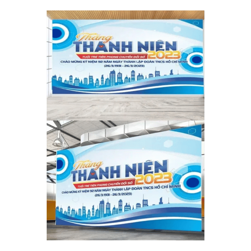 Những sản phẩm in ấn banner, poster và phông nền sân khấu giúp các chương trình kỷ niệm ngày thành lập Đoàn trở nên ấn tượng và ý nghĩa hơn.